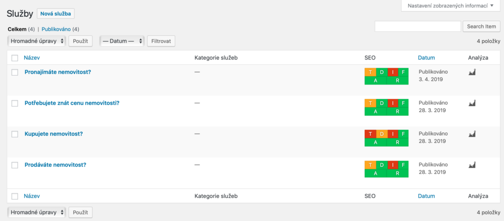 Je-li třeba upravit text služby, nebo změnit obrázek, v seznamu všech služeb najeďte myší na danou službu, objeví se tlačítko „upravit“, po rozkliknutí lze editovat.